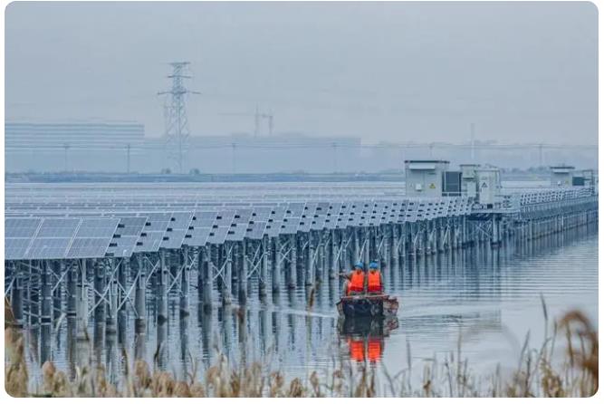 該項(xiàng)目位于溫州浙南產(chǎn)業(yè)集聚區(qū)甌飛圍區(qū)內(nèi)的灘涂上,占水域面積約4.7平方公里。項(xiàng)目將漁業(yè)養(yǎng)殖和光伏發(fā)電相結(jié)合,“上可發(fā)電、下可養(yǎng)魚”,并網(wǎng)后年平均發(fā)電量達(dá)到6.5億千瓦時(shí)